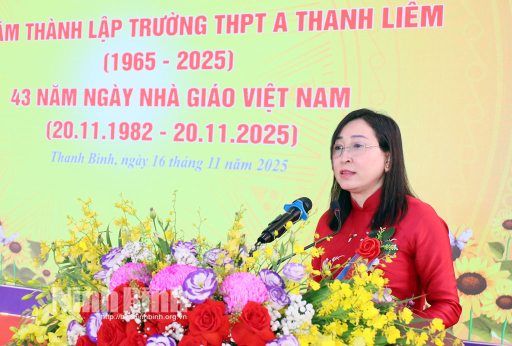 Phát biểu tại buổi lễ, đồng chí Phó Bí thư Thường trực Tỉnh ủy Đinh Thị Lụa ghi nhận và đánh giá cao những thành tích mà trường THPT Thanh Liêm A đã đạt được. Nhân dịp kỷ niệm ngày thành lập trường và Ngày Nhà giáo Việt Nam, đồng chí Phó Bí thư Thường trực Tỉnh ủy chúc các thế hệ thầy giáo, cô giáo, cán bộ nhân viên trên địa bàn tỉnh và Trường THPT A Thanh Liêm sức khỏe, hạnh phúc; chúc các cháu học sinh chăm ngoan, học giỏi và chúc Trường THPT A Thanh Liêm tiếp tục gặt hái nhiều thành công trong sự nghiệp trồng người.
