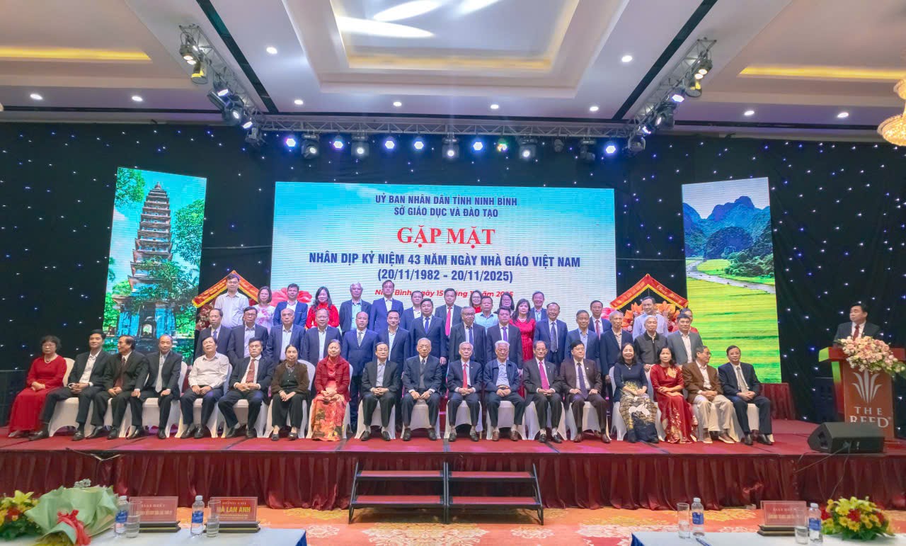Sáng ngày 15/11/2025, trong không khí phấn khởi của cả nước hướng về ngày Nhà giáo Việt Nam, Sở Giáo dục và Đào tạo (GDĐT) tỉnh Ninh Bình đã long trọng tổ chức buổi Gặp mặt nhân dịp kỷ niệm 43 năm Ngày Nhà giáo Việt Nam (20/11/1982 – 20/11/2025). Buổi gặp mặt mang ý nghĩa đặc biệt khi là sự kiện tri ân đầu tiên được tổ chức sau khi địa giới hành chính ba tỉnh Ninh Bình, Nam Định và Hà Nam chính thức sáp nhập từ ngày 01/7/2025. Đây là dịp để các thế hệ cán bộ, công chức Sở GDĐT từ ba tỉnh hội tụ trong một mái nhà chung, cùng ôn lại truyền thống và tiếp nối chặng đường phát triển mới.